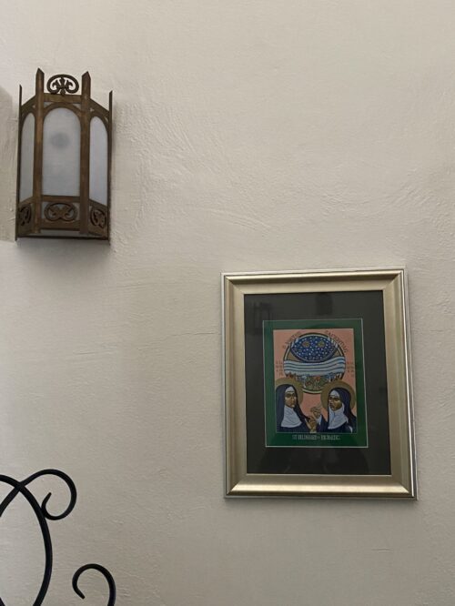 The print in our sanctuary of Hildegard and Richardis hangs in a prominent place because the relationship was so important to Hildegard. The print was created by artist Lewis Williams OFS.