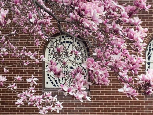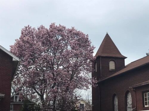 In the spring, the pink blossoms of our magnolia tree are both messy and stunning. When it is in full bloom, it is truly breathtaking! In the summertime, it provides much needed shade for our outdoor liturgies! We have included a video, along with a few photos, allowing us to enjoy the beauty of this tree throughout the year!